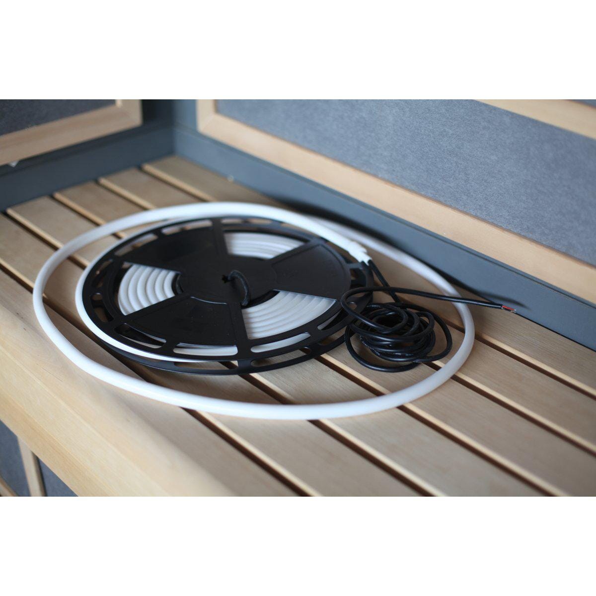 Denne 6m LED stripen kan brukes til å bygge ditt eget tilpassede lys i badstuen. fra gulv til tak, vertikalt eller horisontalt. Den er flekkfri, som et neonrør, derav navnet.