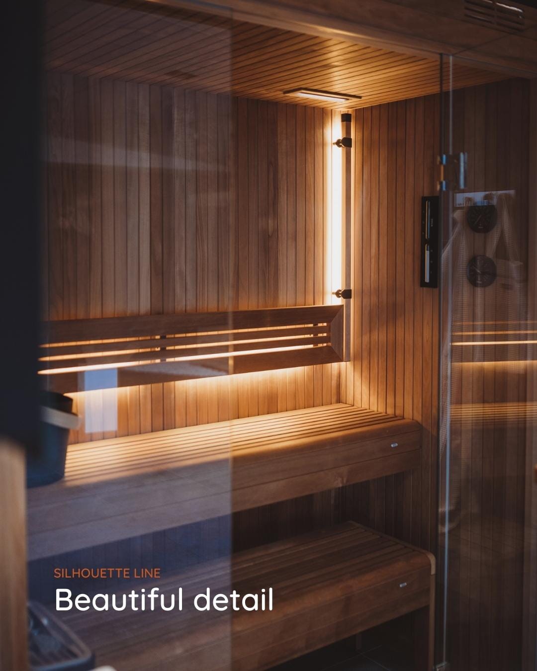 Silhouette Lines minimalistiska design kommer i tre olika längder som gör det möjligt för dig att kombinera och skapa din unika bastubelysning. Belysningen kan roteras 360 grader. vilket möjliggör oändliga kombinationer för att passa i just din bastumiljö. Belysningen är anpassad för bastumiljö och är testad i bastutemperaturer. Möjlig att kombinera med dimningsbart IR-öga, som enkelt manövreras med en handrörelse.