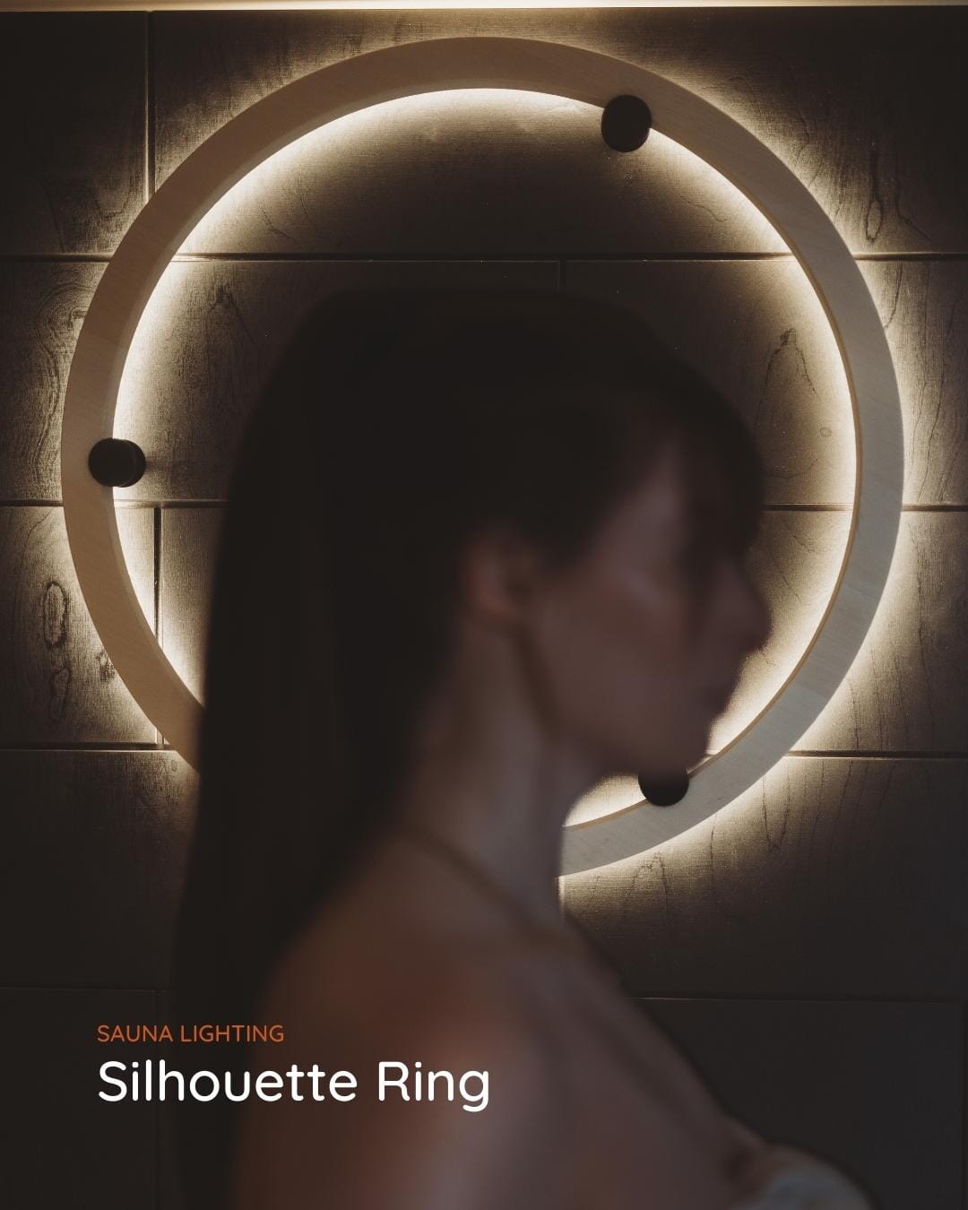Silhouette Rings eleganta design ger ett mjukt. trivsamt ljus som skapar en behaglig atmosfär i ditt basturum. Belysningen kan hängas i taket eller på väggen, lysande för sig själv eller tillsammans med andra ljuskällor från samma serie. Belysningen är anpassad för bastumiljö och är testad i bastutemperaturer. Möjlig att kombinera med dimningsbart IR-öga, som enkelt manövreras med en handrörelse.