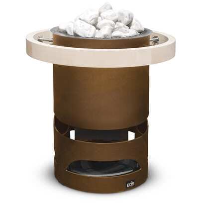 Eksklusiv gulvstående modell i luksusklasse i unik rund design. For den (tørre) finske badstuen. Høydepunktet til EOS Zeus S er det unike laserkuttede solide stålhuset. Finish - rødbrunt pulverlakk i "rusten" design (alternativt tilgjengelig i svart og antrasitt perleeffekt).