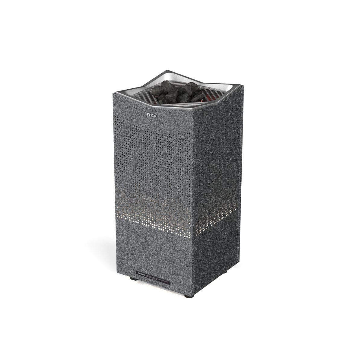 Den gulvstående badstuovnen har et symmetrisk design kombinert med et elegant lysmønster som kaster en varm glød over rommet og skaper en rolig og avslappende atmosfære. Den iøynefallende Crown-grillen gir optimal luftstrøm og varmesirkulasjon gjennom badstuen, og sikrer at du får fullt utbytte av enhetens teknologi.