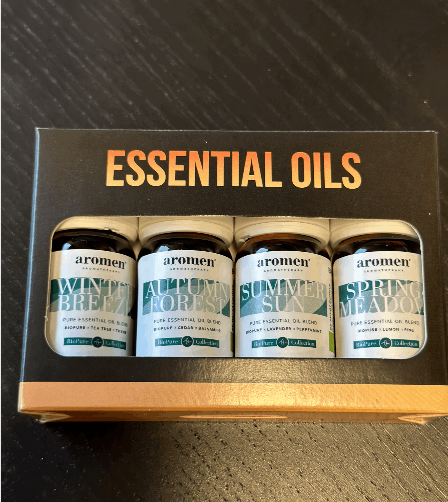 Inneholder 4 x 10 ml eterisk olje. 100% ren.