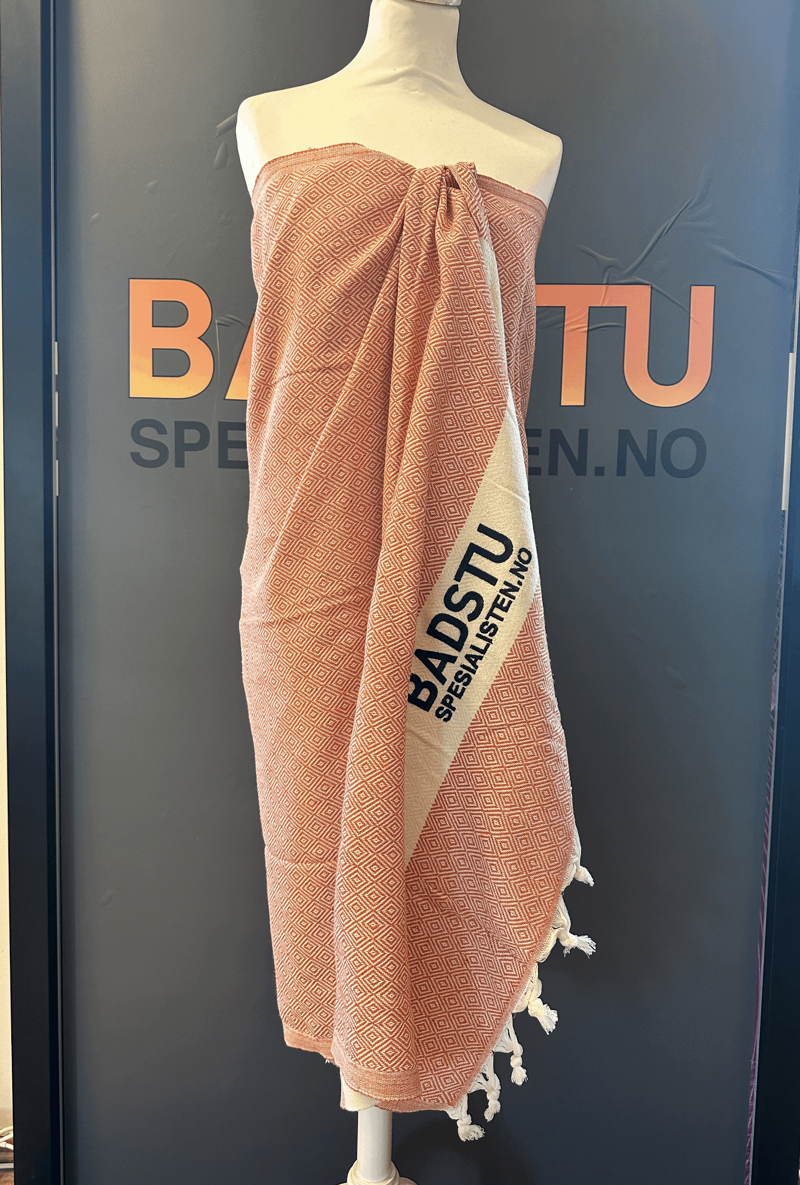 Peshtemal er ett tynt tyrkisk vevd klede som passer ypperlig til bruk i badstu. Den puster og lar deg holde på privatlivet under sekvensene.