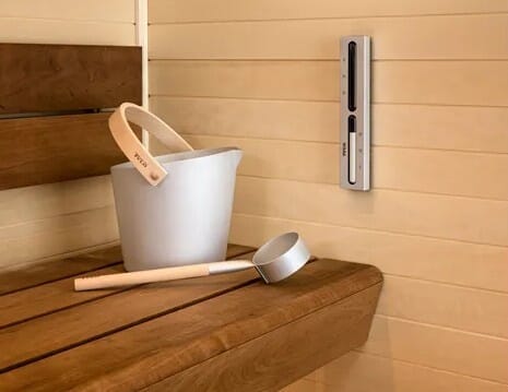 Et termometer og hygrometer (fuktighetsmåler) på veggen gir deg full kontroll over temperaturen og fuktigheten i badstuen – og hjelper deg å finne akkurat den kombinasjonen som passer deg best.