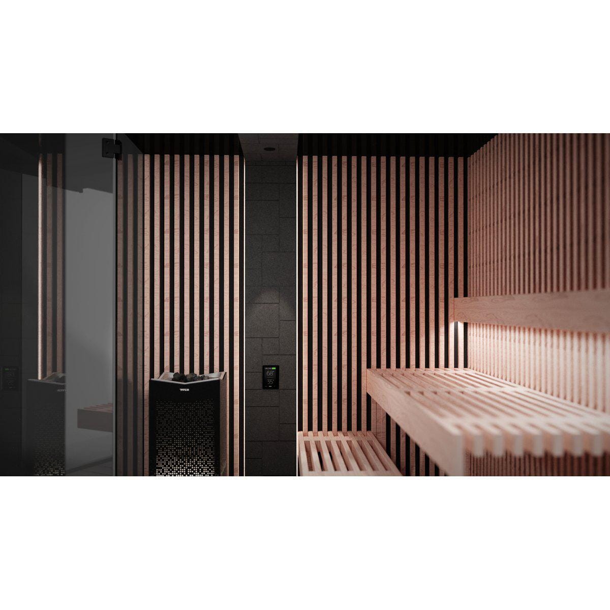 - Monteringsbraketter følger med og er integrert i Sauna Reflection Rib-rommet for enkel og sikker montering.