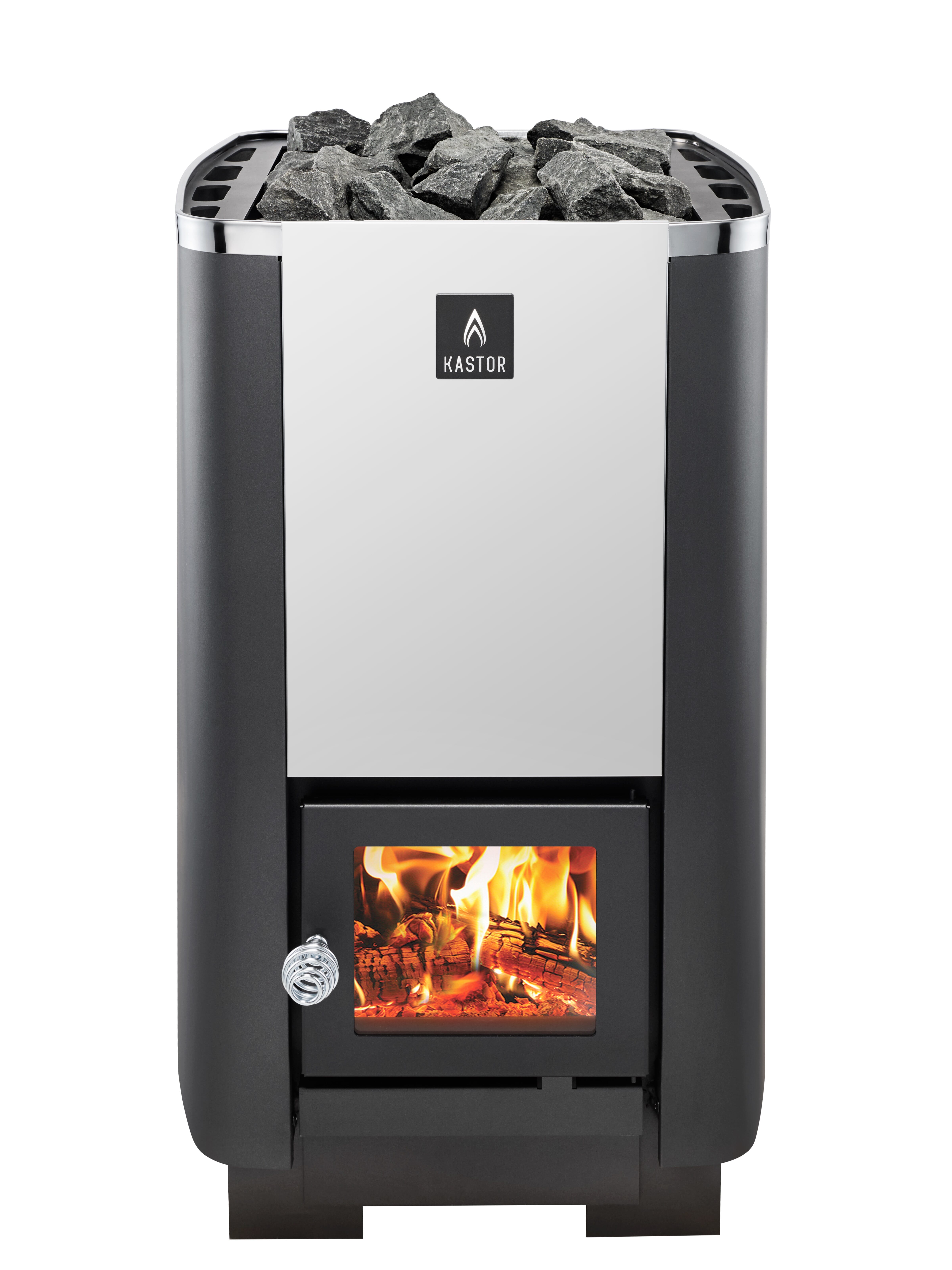 Vedfyrte Kastor Karhu badstuovn har vakre linjer og en overflate i børstet stål. som vil kaste glans over ethvert badstuinteriør. Intelligente løsninger. utviklet for å trekke ut maksimalt med varme fra så lite ved som mulig.